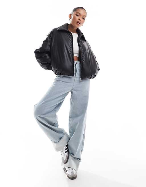 Stradivarius STR Piumino nero in pelle sintetica | ASOS