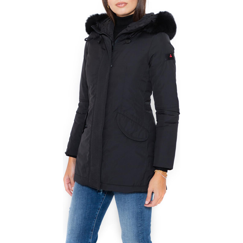 Piumino Liscio a Collo Alto Nero Peuterey. Donna