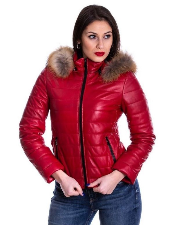 Piumino da donna in vera pelle rosso | Modello A167