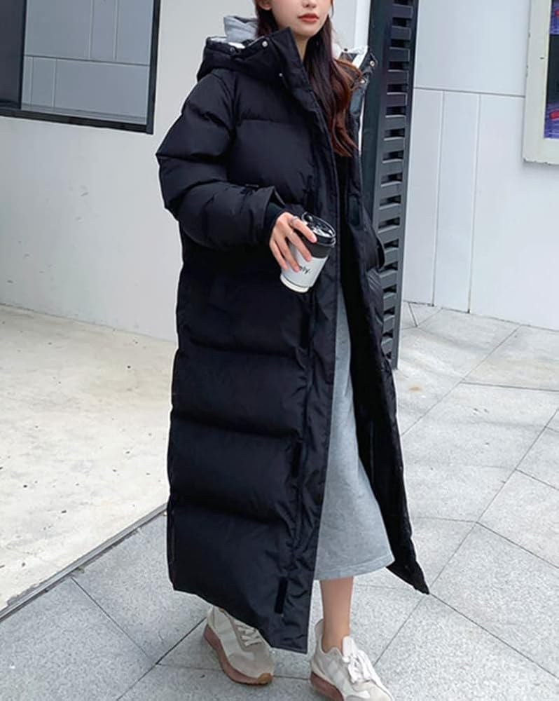 ORANDESIGNE Piumino Lungo con Cappuccio Donna Giacche di Piumino Ultraleggeri Slim Trapuntato Giubbotto Inverno Caldo Addensato Cappotto Lungo B Nero …